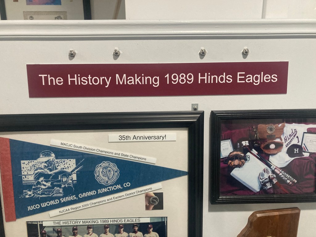 We had this designed for Hillcrest.1973 Eagles wore football pants and jerseys. Stirling Madden & Danny NeelyQuincy LeBlanc beats #1 Kirkwood, 3-2 in Millington.Trainer Murdock kept the guys healthy for 5 games in South Carolina.Barry Collier, Eagle Award WinnerJoe Adams, Tim Brunswick, Mike Lehmann, Barry CollierBarry CollierKevin Butts & Tim BrunswickRick Clarke, 19891988 Hinds EaglesJosh’s famous “spike” sliderMy First Hinds Team, 1984The great Terre WoodsJosh Wren hit .453 in 1998.Jeff Long’s PlaybookBill “Moose” Perry1987 ReunionJosh, Age 12Josh Clarke, Clinton High School, 2008 Playoffs1974 Hinds EaglesSpeed Merchant, Ricky Clarke, Hinds 1973FH Baseball Motto, “We Believe”Josh, training in style.Jeff McClaskey StadiumWingfield’s David Boetler turns a pair; Ricky Clarke #16. Bobby Fowler at shortstop.Forest Hill Rebels, 1972Ricky Clarke, FH 1970My First Hinds Team, 1984Chunkin Charlie Ward and Bill OakesThe BreakoutTom Gladney, Doug Shanks, David LowtherThe Great Con MaloneyChad Bradford1974 MAC Coach of the Year, Bill PerryJoe McCaskillMark AndersAndre Thompson1987 State ChampionsJosh & Eddie LoftonBill “Moose” PerryIn Memory of Wes CliburnEd BrownMagnolia Baseball Trophy StashPat Rapp1 Current, 2 Former Hinds Baseball Coaches 2010 State ChampionshipThe legendary Stan and Stewart CliburnThe Eagles Pat Rapp pitching a 1-hit shutout against the Colorado Rockies, 1995.We got this little cheap plastic trophy when we won the 87 and 89 State Championships, so we made our own antique brass trophy.Two Hinds Coaches!Mississippi baseball history that nobody knows abiout.35th anniversary displayParty of one.Kevin Cronin crashed this scoreboard with a game winning 3-run homer in 1999.This is the gym where Mr. Hutch and I hung out after we both got ejected in game 2 of the Region 23 tournament at NW in 1995. We returned for game three and won the championship.
