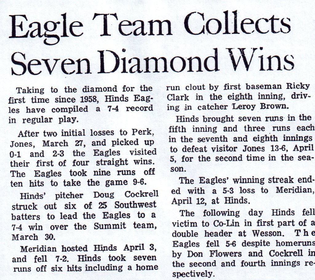 Stirling Madden is writing a story about the team and I’ll include it here as soon as he sends it. This is when the great Hinds baseball tradition got its start, thanks to the boys of ’73.