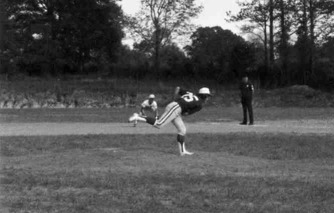 In the spring of 1973, Hinds reinstated the baseball team for the first time since 1958. Danny Neely was the coach. Powell Taylor drove the bus and coached first base. The players had to construct a make-shift baseball field (located in the same position as today’s Joe G. Moss Field). Note the photo of the backstop; photo 30. There were no scholarships, no dugouts or outfield fence. No turf. They were going to add lights in the future. They did it 28 years later. We used wooden bats. And the field looked pretty rough, but they all did in 1973. We played only 11 games and finished 7-4. There was no team picture and not many individual photos. We had no uniforms for most of that season and wore football jerseys and football pants. Everything was in black and white.
