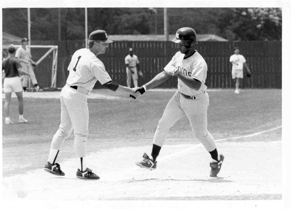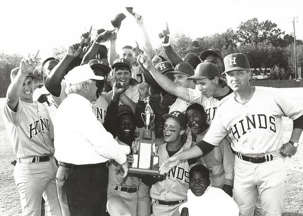 Commissioner Mac McClellan presents trophy after Eagles defeat Pearl River 5-3 for the 1989 MACJC State Championship at Mississippi College. The Region 23 Championship and Eastern District Championship and a trip to the JUCO World Series in Grand Junction, Colorado were to follow in the next 3 weeks.George McQuitter, Dr. Clyde Muse, Renee Warren, and Rick Clarke; all smiles.Noah James (Rip) hit two home runs in the winner’s bracket game against Pearl River to send us to a rematch in the championship game.The looks coaches have in hard played tournaments games against arch-rivals. We beat Delta 9-6 in the opener, Pearl River 4-2 in the winner’s bracket game and again 5-3 in the championship game. Delta and PRCC eliminated Northwest.Go to the NuWay LinqApp at rickclarke.com
