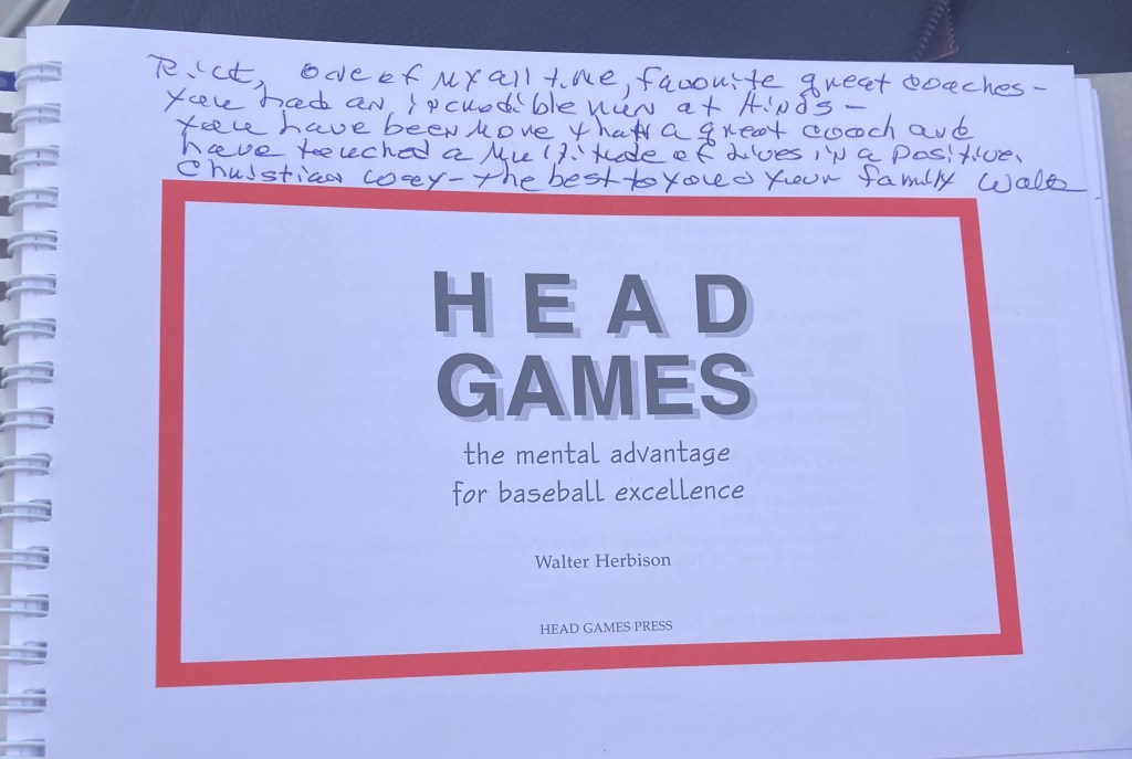 Got the guru to sign my book. It is very effective for training that “6 inches of real estate between the ears.” Thanks to Walter Herbison.
