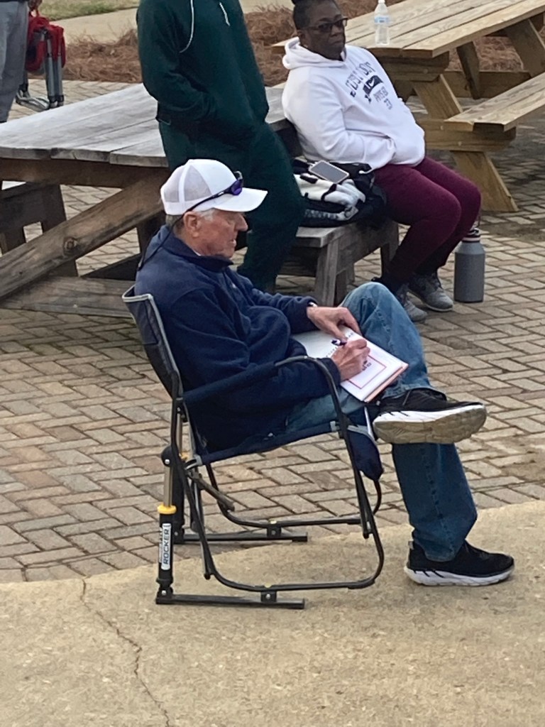 Another guru sighting. Legendary basketball coach Steve Rives (and wife Ms. Sue) in the good “reserved” seats. We are watching our kids coach. Congratulations to the Coach for being selected to the Mississippi Sports Hall of Fame with induction ceremonies in August.