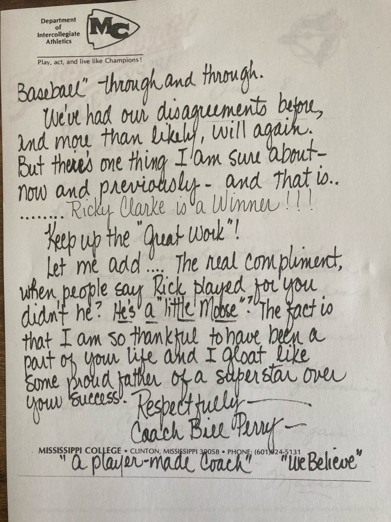 In loving memory of my Coach, Bill “Moose” Perry, I decided to share a couple of letters that he wrote to me long ago when I started my coaching career at Magnolia Academy.