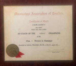 Coach Perry’s Forest Hill Rebels went 29-1 and won the Mississippi High School, Class AA baseball state championship in 1974.